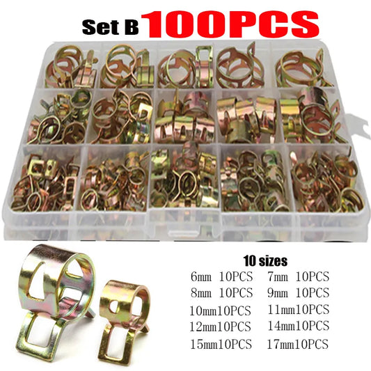70/100/155PCS Fuel, Vacuum, Coolant, Oil Hose Spring Clips Tube Clamp Fastener