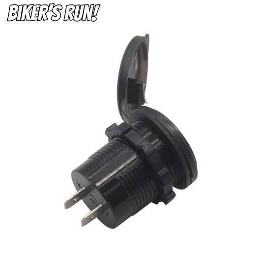 12V DIN Hella/Hermit Mini Plug (BMW/Ducati/Triumph) to Quick Charge 3.0 Dual USB Charger Adapter With Built-in Voltmeter