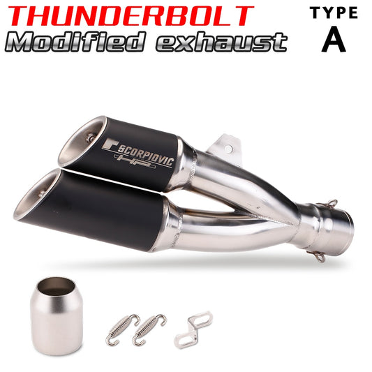One into Two Thunder Bolt Motorcycle Exhaust Pipe 51mm Muffler Universal Fit Custom Performance Scopiovic