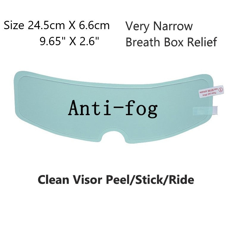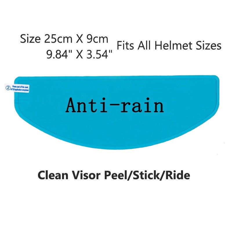 Apply one film to the inside of your helmet visor for anti-fog. Apply a second film to the outside of your visor for anti-rain effect. Just clean your visor, peal and stick the anti-fog/anti-rain film. No need to reapply, works for as long as it is installed. Makes a perfect gift for the hard to buy for motorcyclist or off-road enthusiast.